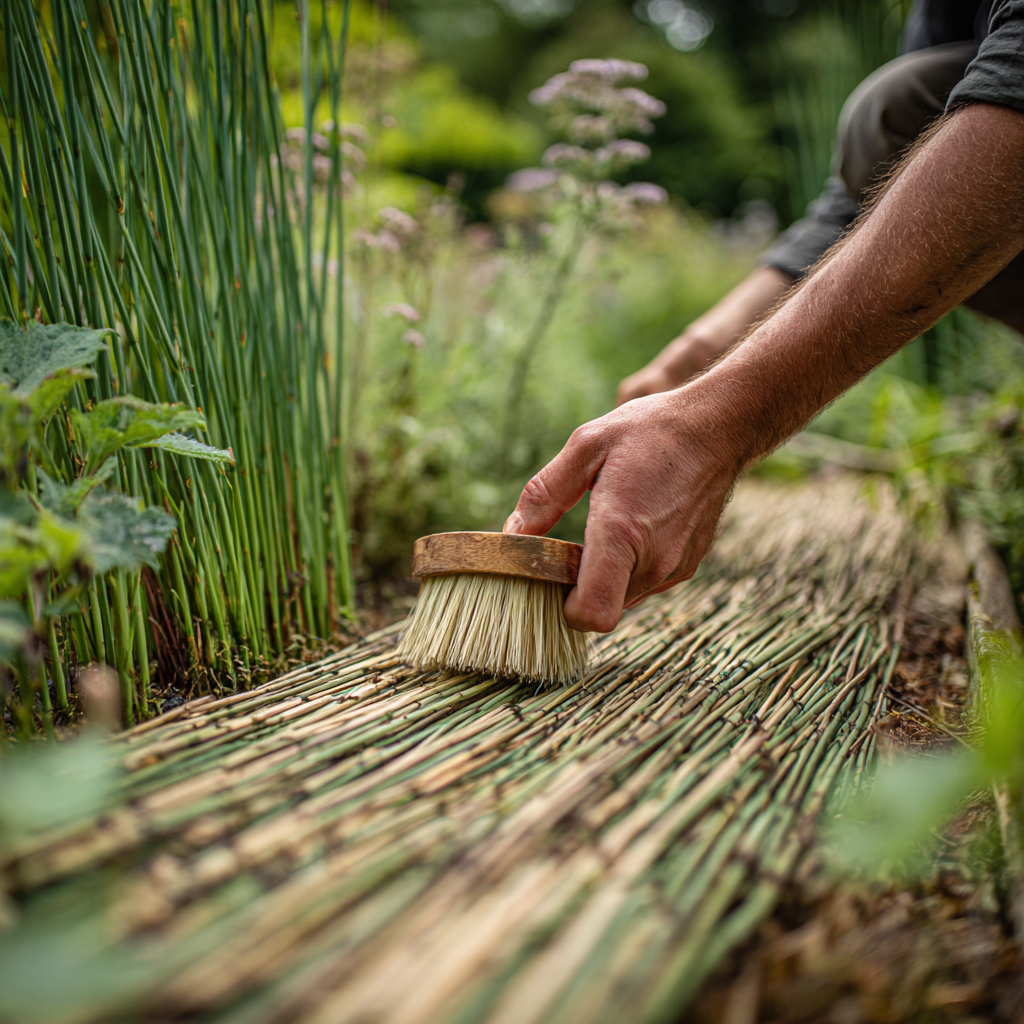 Rietmatten vragen om een iets andere aanpak dan bamboeschuttingen. Het is cruciaal om extra aandacht te besteden aan hun bescherming. Begin met het reinigen van de matten met een zachte borstel om vuil en stof te verwijderen. Gebruik vervolgens een mengsel van water en milde zeep om de matten af te spoelen. Na het reinigen is het essentieel om de rietmatten met een beschermlaag te behandelen, zoals een natuurlijke olie of een speciaal ontwikkelde rietmatbeschermer.