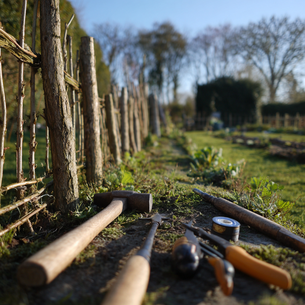 Voordat je begint met het creatieve proces van schuttingvlechten, is het essentieel om alle materialen en gereedschappen klaar te hebben liggen. Voor de verticale ondersteuning gebruik je stevige palen als staanders, die de ruggengraat van de constructie vormen. Deze kunnen van hout of metaal zijn, afhankelijk van jouw voorkeur en de gewenste stevigheid.